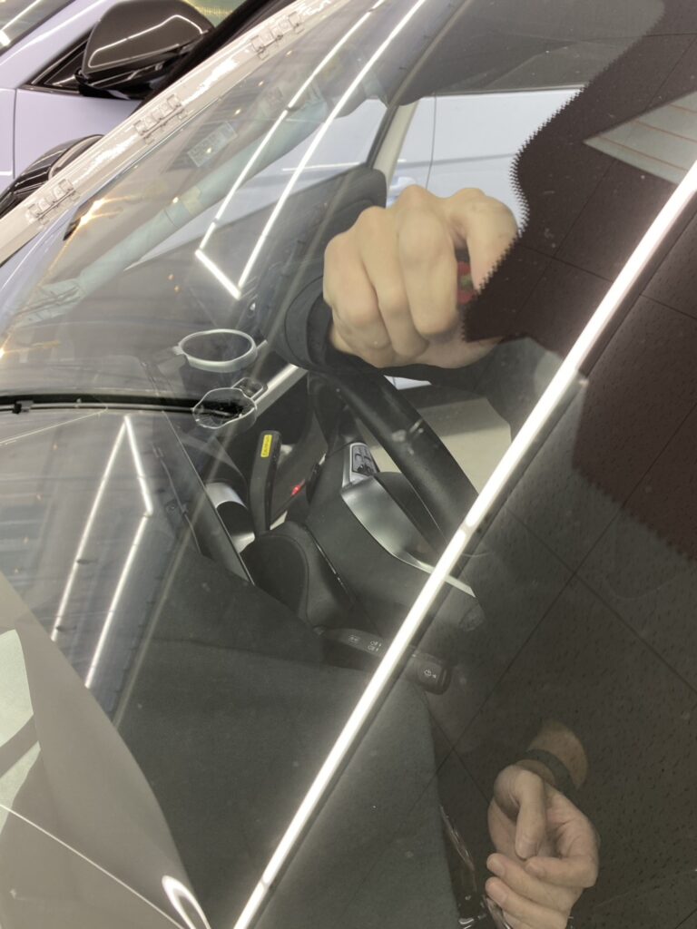 取り付け後の歪みや光の乱反射がなく、クリアな視界がしっかり確保されました。